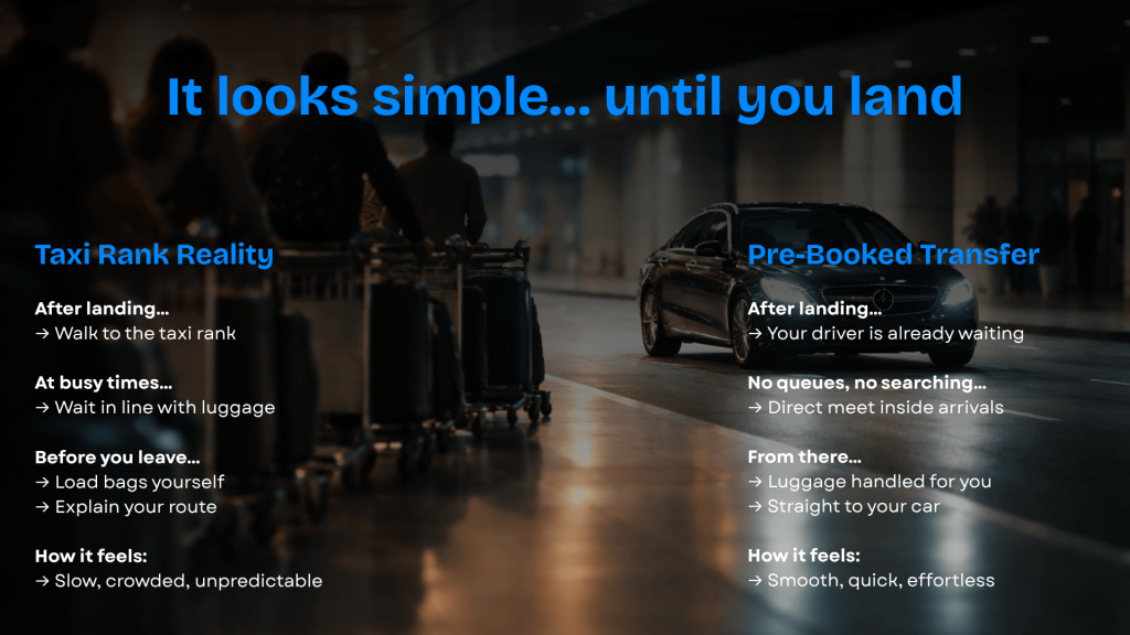 Many travellers assume that “booking online” simply means using an app-based taxi platform. But airport journeys are not standard city rides.