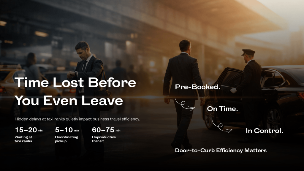 One of the most overlooked inefficiencies in business travel is the time lost before the journey even begins. Waiting at taxi ranks, searching for available rides, or dealing with last-minute cancellations creates unnecessary delays.